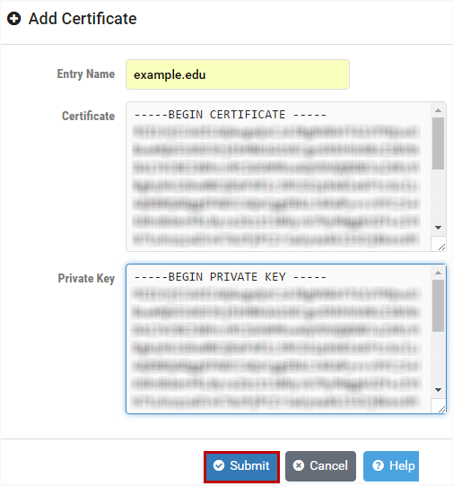 Fill in the Add Certificate form with the following information:
