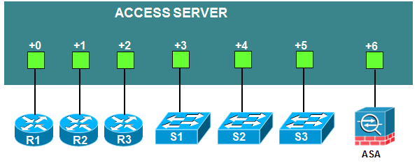 Access servers provide console connections to lab routers so that users can access them from NETLAB+. Users do not communicate directly with the access server. Rather, all connections are proxied through NETLAB+.