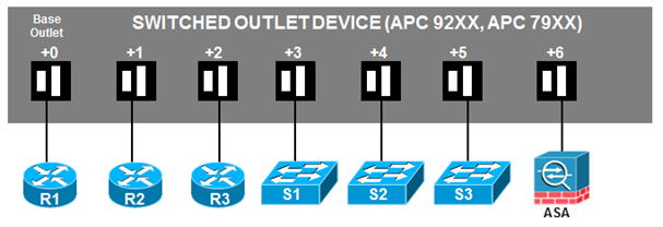 Outlets do not have to be consecutive and may span multiple PDUs (i.e., APC7900 or APC7920).