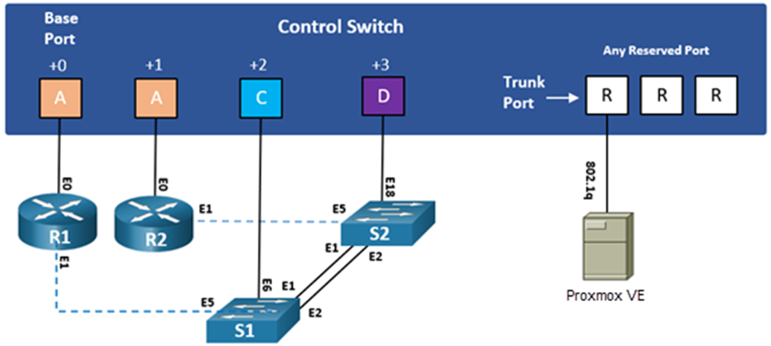 When configuring the control switch ports, refer to Control Device Requirements to identify the respective Relative Port # and Base Port numbers along with the Port Role based on the lab device.