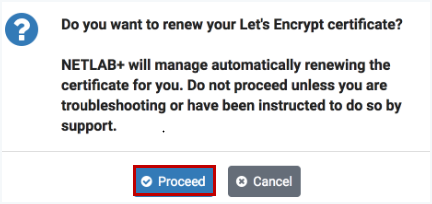 Initiates an automated process where your NETLAB+ system will request and obtain a signed certificate from Let’s Encrypt, a free certificate authority.