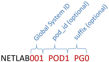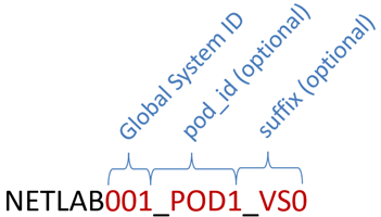 default naming convention is NETLABx_PODy_VSz, where x is the
