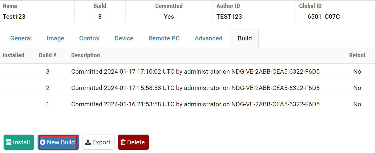 Click the New Build button to create a new build of the